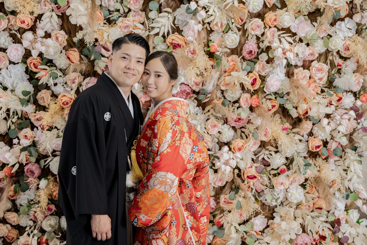 プラン内容:撮影料・新婦衣装1着・新郎衣装1着・着付け・新婦ヘアメイク・小物一式・データ150カット・家族と撮影・ペットと撮影